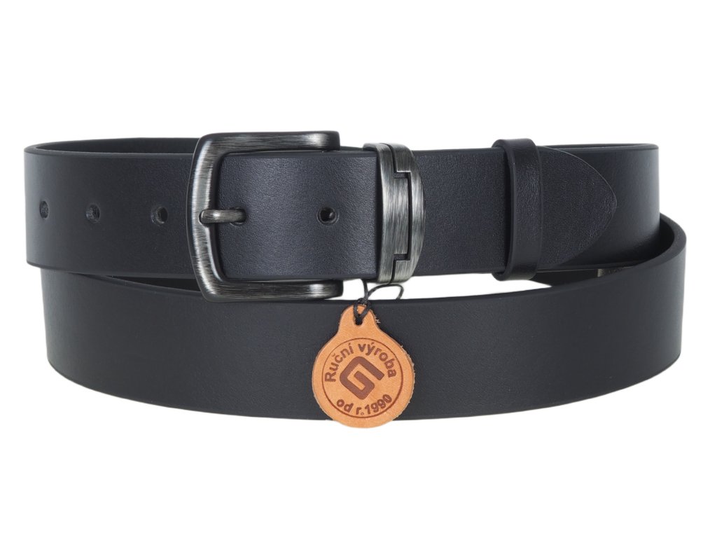 Černý opasek šíře 4 cm, vyroben z kvalitní hovězinové usně o síle 4 mm.